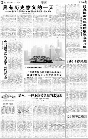 中新自由贸易协定全面提升两国合作关系