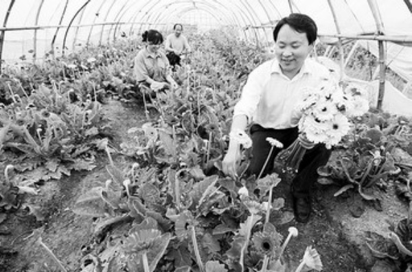 4月8日,江西德安县河东乡石桥村农民童军生(右一)在大棚里采摘非洲菊。 今年年初的雪灾给童军生的花卉大棚造成严重损失,当地政府及时给他送去灾后补贴,并帮助他开展灾后生产自救。如今,他的32亩花卉大棚里的玫瑰、非洲菊竞相绽放,预计年纯收入可达20余万元。 新华社记者 宋振平摄