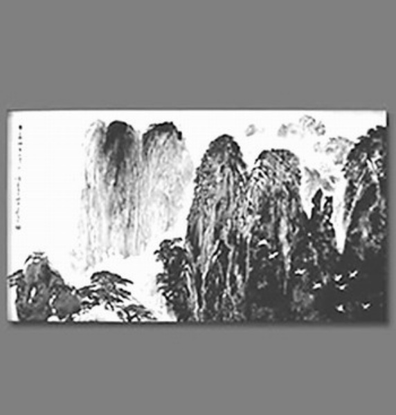 瓷板《黄山西海》以酣畅笔墨绘远景,以精细线饰画近景,烘托空间深远的意境。