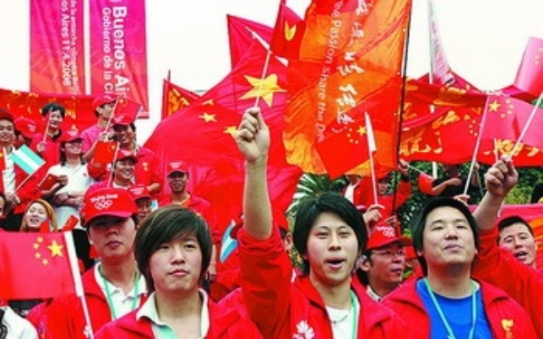 4月11日,华人华侨在观看奥运圣火传递。当日,北京奥运圣火传递活动在阿根廷布宜诺斯艾利斯举行。