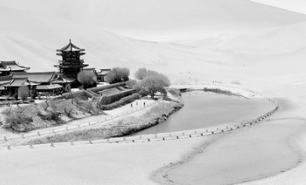 月牙泉位于甘肃省敦煌市城南5公里处。近年来,敦煌市采取禁止打井、发展高效节水农业等多种措施保护当地生态环境,并于2007年启动了月牙泉水位下降应急治理工程。日前,月牙泉水位出现回升,旁边不远的低洼处还渗出泉水,面积约400平方米,形成“二泉相映”奇观。 朱师良摄 (新华社发)