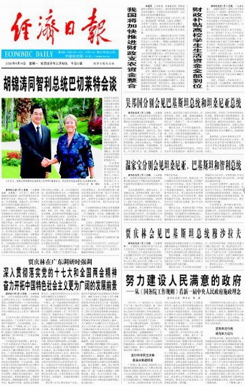 温家宝分别会见坦桑尼亚、巴基斯坦和智利总统
