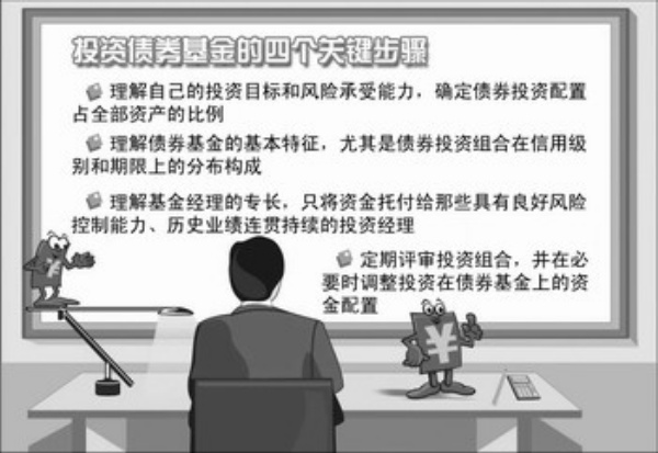 随着国家大力发展企业债券市场的政策逐步付诸实行,不同债券基金的收益风险差别将逐步扩大。所以,投资者必须养成良好的投资习惯,掌握长期投资债券市场的科学方法。具体而言,成功投资债券基金涉及以下四个关键步骤: