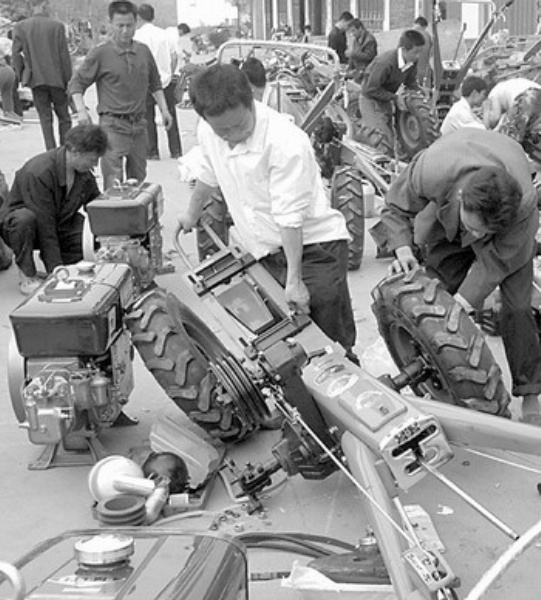 4月8日,江西省南昌市新建县象山镇农机销售部门前热闹非凡,农机服务人员正在为51户享受国家购机补贴的农户集体装配手扶拖拉机。南昌市农机管理部门负责人告诉记者,今年国家进一步加大了对农民购买农机具的补贴力度,农民购买农机具的热情空前高涨,目前南昌地区仅手扶拖拉机一项就销售了7000台。 本报记者 赖永峰摄