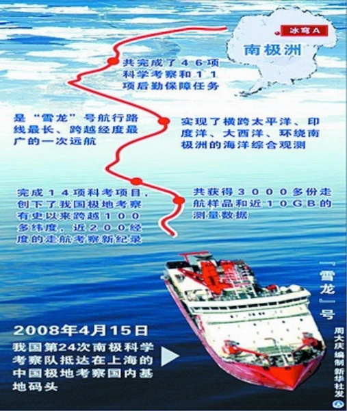 第24次南极考察的圆满结束,还标志着“雪龙”号极地科考船成功通过了更新改造后的首航考验,创造了“雪龙”号历史上航程最长、时间最长的新纪录。“雪龙”号曾4次成功穿越西风带,总航程28450海里,其中在冰区航行800多海里。