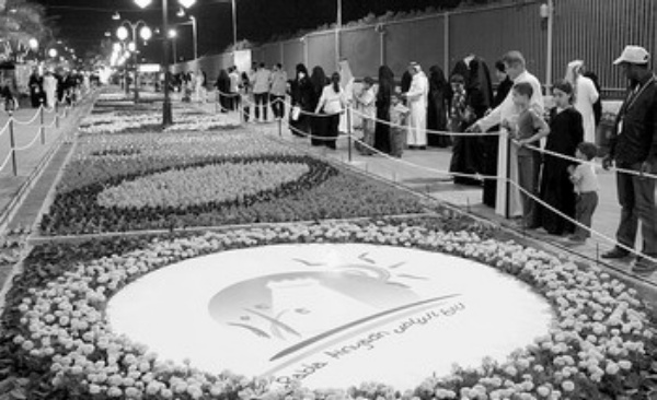 日前,游人们在沙特阿拉伯首都利雅得举办的“利雅得之春”花卉园艺展上观赏花卉。“利雅得之春”活动为期11天,展出数万株各色花卉及一些盆景。 新华社记者 李 震摄