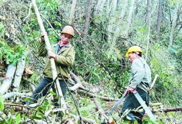 福建省邵武市桂林乡林农在山上清理受灾林木。        林传仁摄