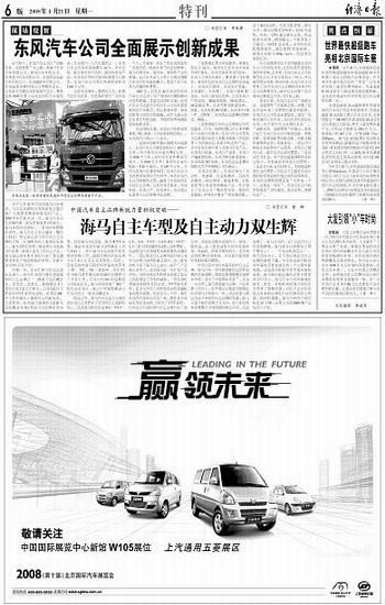 作为目前中国汽车最年轻的自主品牌,海马汽车一直有着清晰的定位和成熟的市场战略,那就是做透做精中级轿车市场,成为“中级轿车专家”。从这一点而言,海马面临提升品牌、产品形象上的压力,似乎要比从低端市场做起的奇瑞与吉利要小一些。因此很多人都认为这个年轻的自主品牌的发展,既与从零开始的创牌方式不同,也与利用资本优势整合全球资源的模式不同,而是选择了一条与众不同,又十分适合自己的发展路线。海马现在已经拥有了两个整车工厂、一个发动机制造工厂、两个研发中心,无可争议地成为自主品牌的新锐力量。今年也是海马股份郑州基地首度参展亮相,介入微车新领域,这是海马积极寻求市场突破的表现。海马股份副总裁孙忠春在接受采访时表示,海马汽车与郑州基地在技术、研发、采购和质控等方面的共享带来了规模优势,对拉升企业的市场占有率和品牌的行业优势有很大帮助。他同时透露,海马今年的产销目标是15万辆,并努力实现8000辆产品的出口计划。