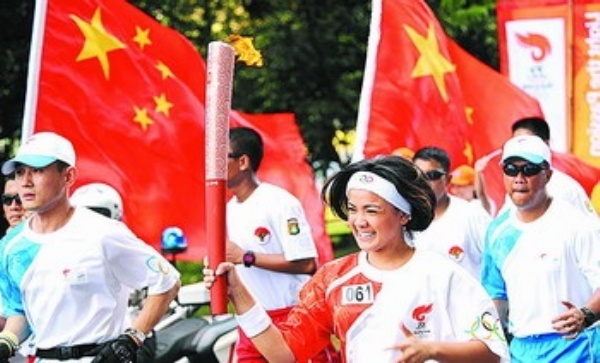 新华社雅加达4月22日电 (记者马邦杰 张荣锋) 北京奥运会火炬接力22日在印度尼西亚首都雅加达进行了境外第14站的传递。