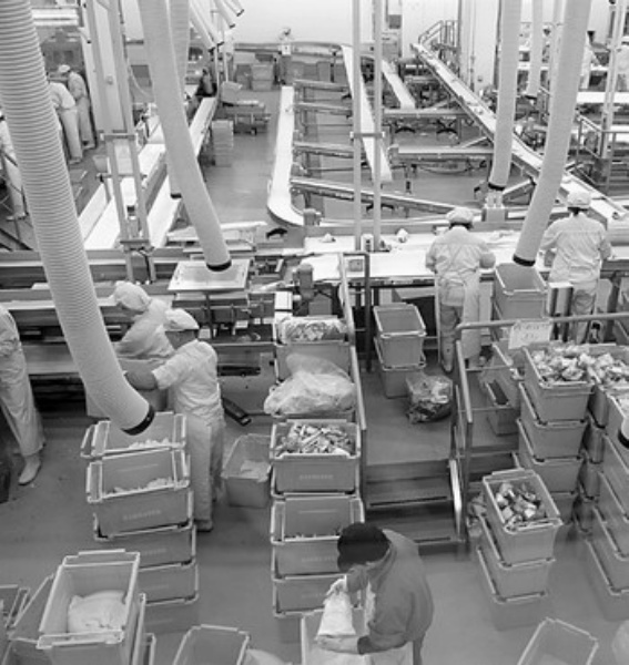 公司负责人带我们参观了“循环型饲料化中心”。谷古宇介绍说,Agri Gaia System 公司循环型饲料化中心现有员工94名,日处理能力255吨(其中干燥饲料180吨,液体饲料70吨,沼气发酵5吨)。该中心的最大特点是实现了100%的再循环利用。业内人士知道,用机器对食品废弃物进行分类最高只能达到99.7%的分辨率,而该工厂则实现了100%的分辨率。办法其实很简单,就是由人来完成机器无法做的0.3%的工作。如用人工将各种烤串儿中的竹签儿挑出来等。目前,该中心与日本7—11公司合作,每天从东京都23个区的991家7—11便利店回收废弃盒饭,进行再循环利用。生产过程中产生的臭气被吸收保存在专用贮罐中,污水和细小垃圾则转换成沼气,用于焚烧臭气。盛装食品的盒子交给专门的公司作为能源进行再循环利用,而无法变成饵食的盒饭,则用于种植蔬菜的肥料。