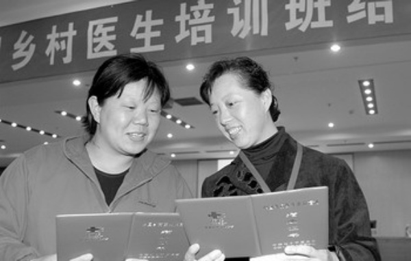 4月14日,两名来自山西的乡村医生得到北京协和医院的培训结业证书。