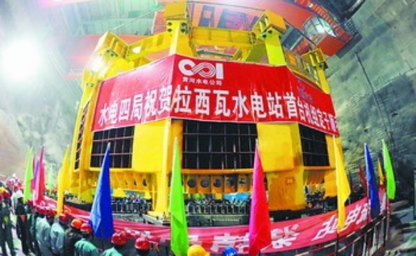 这是拉西瓦水电站首台发电机定子吊装现场。4月24日,位于黄河上游的青海省拉西瓦水电站首台发电机定子吊装成功,为保证2009年水电站首台机组实现发电奠定了基础。 新华社记者 侯德强摄