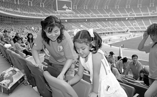 图为天津市民参加义务擦洗奥体场馆活动。 本报记者 武自然摄