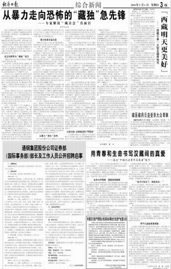 专家介绍,2002年,“藏青会”前主席次旦诺布接受“民运”分子采访时称,为重视“西藏独立”将使用任何方法,其中包括使用恐怖手段。他还要求“藏青会”成员拿起武器进行斗争。而此前,“藏青会”的多届主席、秘书长也曾经多次声称:“武装斗争和使用暴力是西藏获得完全独立的必由之路”“恐怖活动可以用最低成本获得最大效果”“恐怖活动可以获得广泛影响,吸引国际社会对‘西藏问题’的关注”。