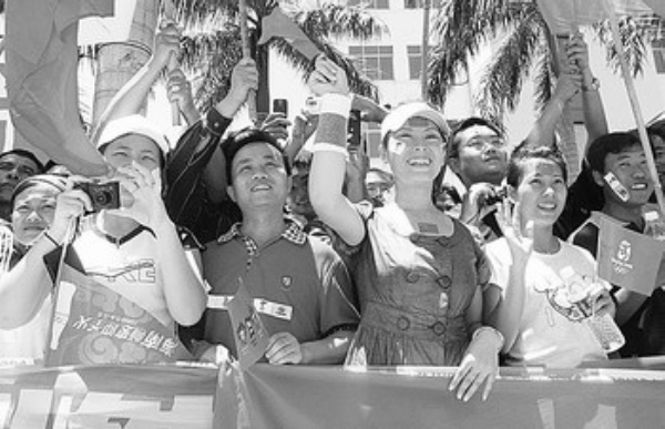 中午11时半,火炬传递到美丽的石梅湾。第86名火炬手、海南省陵水黎族自治县农民吴仁能高擎奥运圣火,在大海边兴高采烈地高喊:“为北京奥运加油,为传递圣火燃烧!”