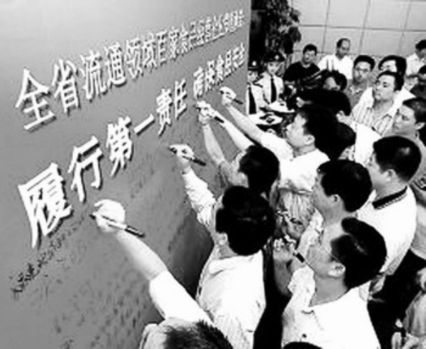 福建省工商局召集百家大型食品经营企业“第一责任人”签字承诺:履行第一责任,确保食品安全。 祝敏松摄