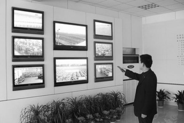 8块电子显示屏,将遥远的农产品标准化基地、农药配送中心、加工车间、检测中心等现场画面,清晰地展现在记者眼前。远程监控系统如今已在农产品质量保证体系中大显身手。