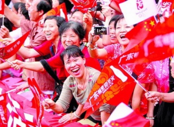 5月7日,广州群众为奥运圣火传递活动加油,北京奥运圣火传递活动在广东省广州市举行。