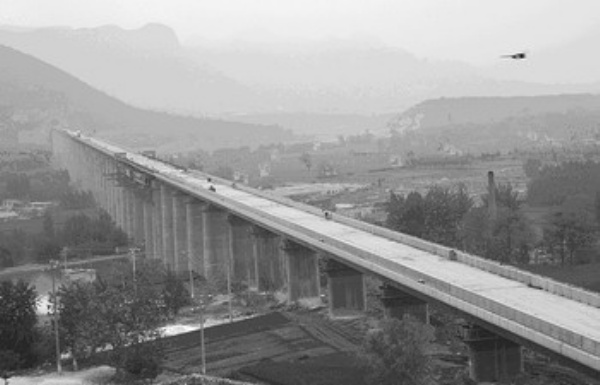 太行山深处的国家重点工程————石太铁路客运专线冶河特大桥施工现场。中铁22局四处的建设者为了解决混凝土特大桥梁筑件无法进行深山运输的难题,在世界上首创移动模架高位逐跨现浇新工艺,攻克了在40米高空浇筑特大型桥梁的重大技术难题,仅用了22个月时间就完成了这座有着52孔跨梁,总长达1688.8米的桥梁主体工程,比原计划提前了14个月。 本报记者 雷汉发摄