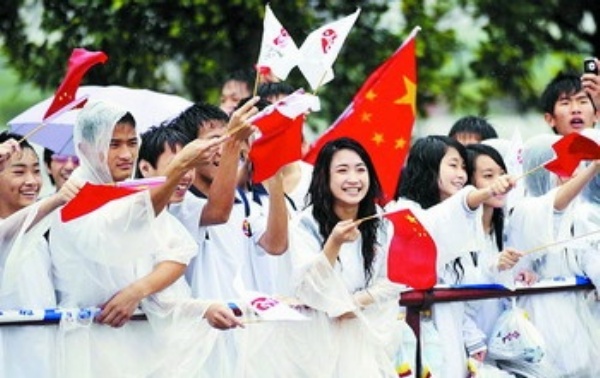 5月10日是北京奥运圣火在广东省传递的最后一天。早上,天空下起了大雨。然而,一大早就有市民冒雨来到汕头市龙湖区政府前广场,等候起跑仪式开始。各种为迎接圣火准备的文艺节目也在雨中抓紧准备。