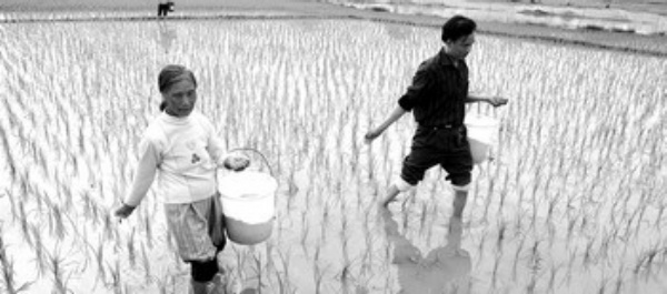 5月7日,江西于都县车溪乡车胜村农民正在给早稻追肥。近年来,江西各地把各项支农、强农政策落到实处,确保大灾之年农业生产不滑坡、粮食不减产、主要农产品供给不断档、农民增收不回落,有效地保护了农民种粮积极性。今年,江西全省粮食种植面积稳定在5400万亩,预计粮食总产量超过190亿公斤。 新华社记者 宋振平摄