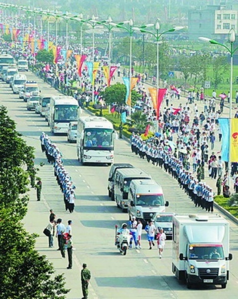 结束了在龙岩传递后,奥运圣火转至另一个革命老区江西瑞金,14日继续传递。