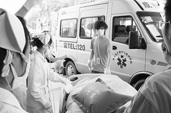 右图 四川省人民医院医护人员在积极地收治来自灾区的伤员。 本报记者 任 芳摄