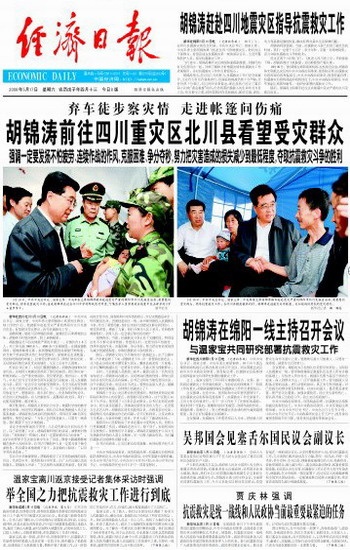 胡锦涛赶赴四川地震灾区指导抗震救灾工作