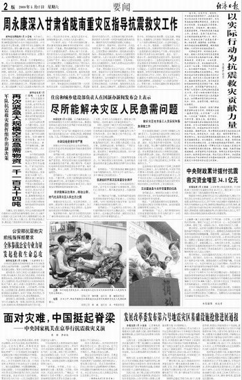 周永康深入甘肃省陇南重灾区指导抗震救灾工作