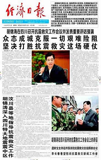 胡锦涛在四川召开的抗震救灾工作会议上的讲话