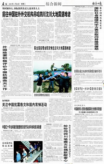 关注中国抗震救灾和国内哀悼活动
