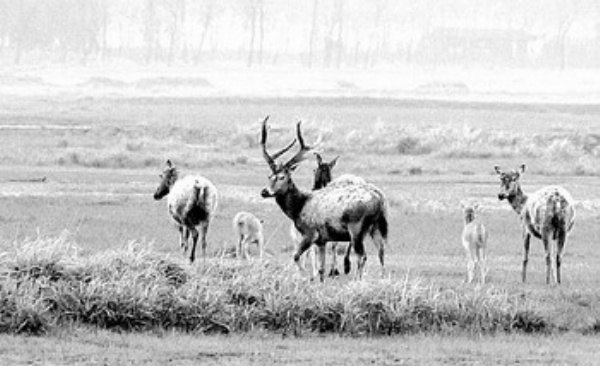 江苏大丰麋鹿保护区是目前世界上最大的野生麋鹿放养地,总面积达3000公顷。近年来,在保护区科技人员的精心管护下,麋鹿在故乡的土地上正常繁衍扩群。图为一群麋鹿正在保护区里休憩。 新华社发