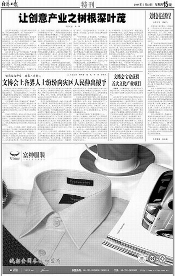 文博会上各界人士纷纷向灾区人民伸出援手