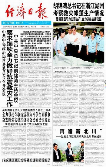 胡锦涛总书记在浙江湖州考察救灾帐篷生产情况 强调开足马力加紧生产,全力以赴支援灾区