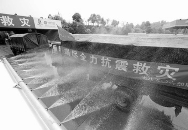 (图) 5月23日,四川成都城北收费站,进出车辆正在进行防疫消毒。 本报记者 李景录摄