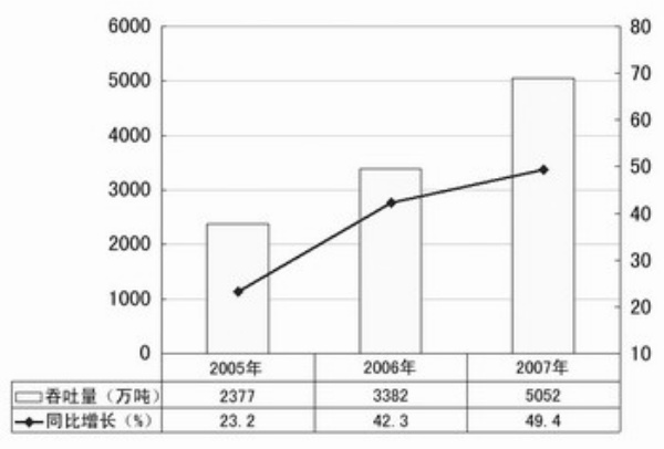 近3年防城港吞吐量变化