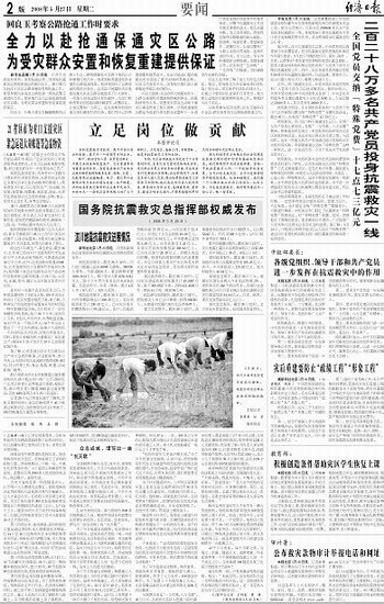 各级党组织、领导干部和共产党员进一步发挥在抗震救灾中的作用