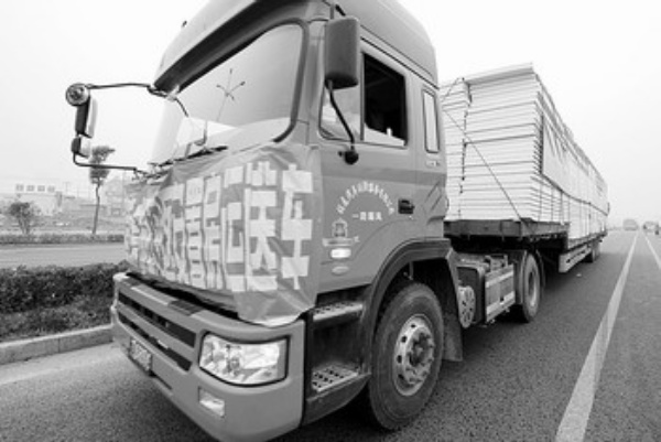 5月23日,一辆装载过渡安置房的大货车准备出发前往灾区。