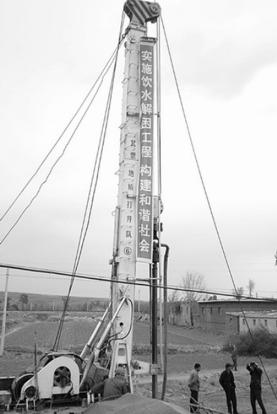 这次实施饮水解困工程,为了打出水,水利部门跨省请来了山东省水利水科院的教授进行勘测,打了一眼深145米的井,并采取了盐酸洗井的先进技术,保证了饮用水量。