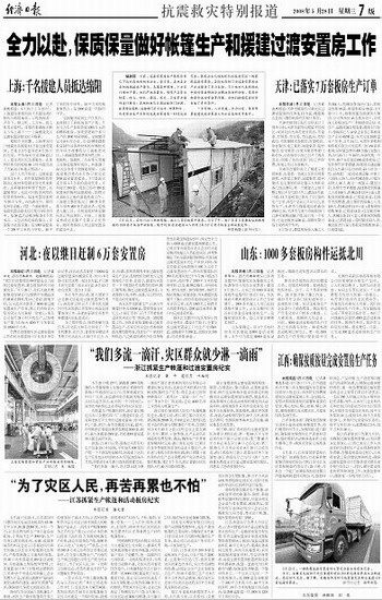 全力以赴,保质保量做好帐篷生产和援建过渡安置房工作