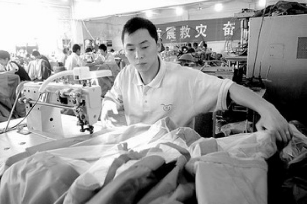 左图 5月28日,北京五洲佳泰公司生产车间,工人们正在加班加点赶制救灾专用帐篷。由于四川地震灾区急需救灾帐篷,这家企业以日产近300顶的速度昼夜奋战,确保以最快的速度、最好的质量完成救灾物资的生产任务。这里生产的帐篷防水透气,面料和辅料材质高于市场上销售的一般帐篷。 本报记者 赵 晶摄