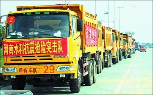 党中央、国务院的亲切关怀,来自四面八方的关心、支持和帮助,温暖了灾区广大干部群众的心,鼓舞了战胜困难的斗志。人们不等不靠,抗震救灾,生产自救,重建家园。都江堰市于5月21日恢复农业生产,当地农业部门已经储备、组织了大型农业生产设备及肥料等,分发到各乡镇,投入使用。