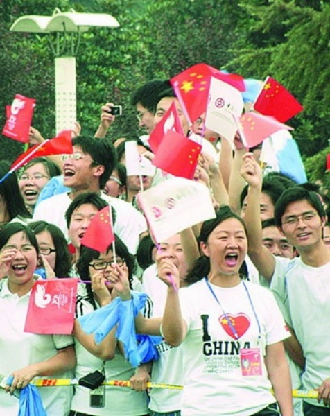 宜昌市民热情欢迎奥运圣火的到来。 本报记者 佘惠敏摄