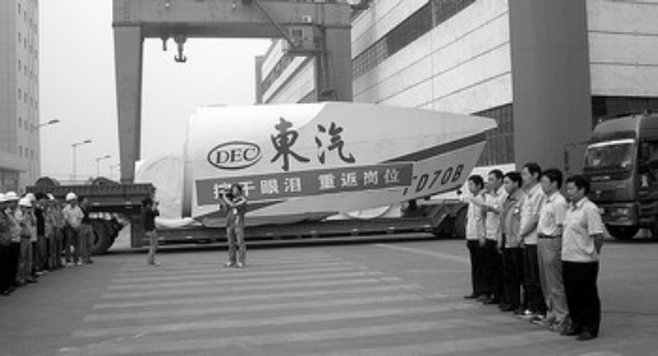 5月19日,东方汽轮机有限公司签下震后第一笔订单,与中国节能投资有限公司签订了12.4亿元共134台风电合同,东方汽轮机有限公司风电事业部全面恢复生产。