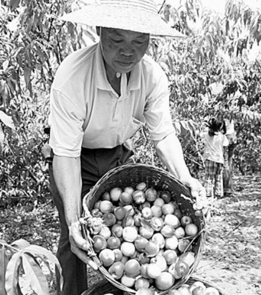 5月24日,田阳县玉凤镇巴庙村坡东屯一位果农将油桃装筐。