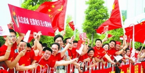 安徽合肥市奥运火炬接力现场。 李亚朝摄