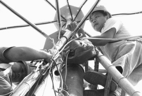 6月3日,四川都江堰市电信实业公司的员工正在抓紧修复最后一批小灵通机站。当日,该市小灵通用户全部恢复正常使用。