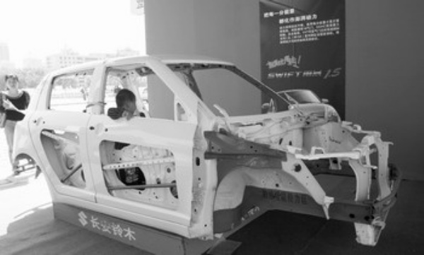 5月24日,中国汽车安全主题巡展最后一站在长春文化广场开幕。本次巡展旨在通过汽车安全展览和汽车安全论坛等活动,向广大消费者介绍汽车安全知识、汽车碰撞试验和安全驾驶理念等内容。图为一家厂商在巡展上展示车架的安全设计。 新华社记者 邵守志摄