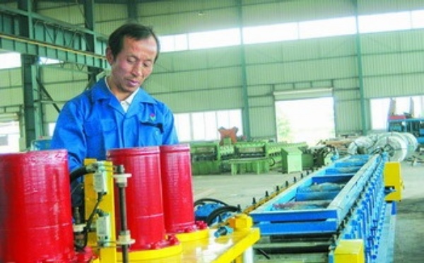 中午一个小时的休息之后,大家又返回了生产线安装现场。老肖协助安装的这两台C80—300型C型钢成型机是雅致公司5月31日才从福建一家生产厂家紧急赶运到成都的,上午半天基本安好了一台。