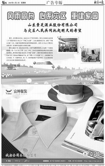 山东景芝酒业股份有限公司与灾区人民共同托起明天的希望